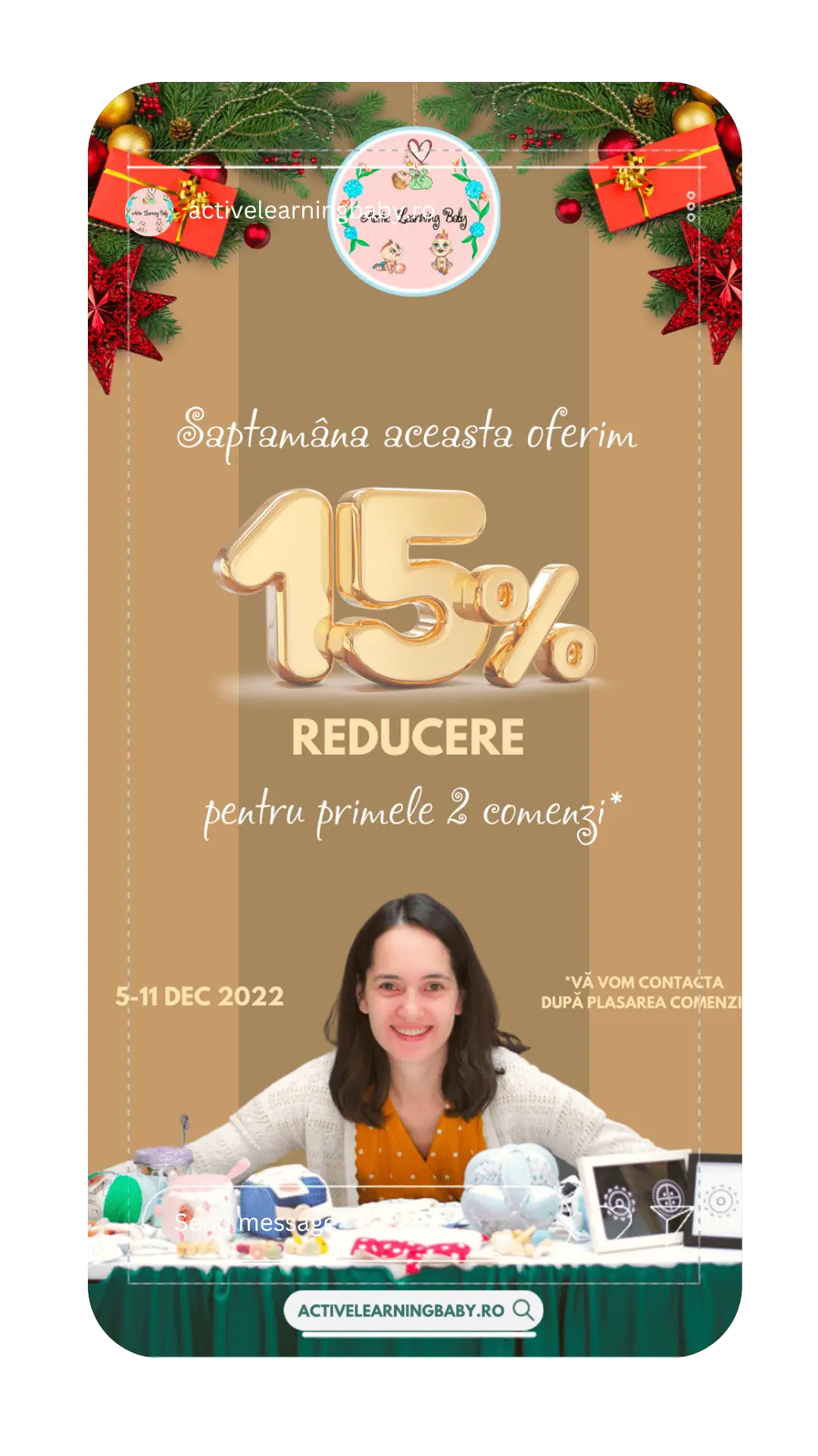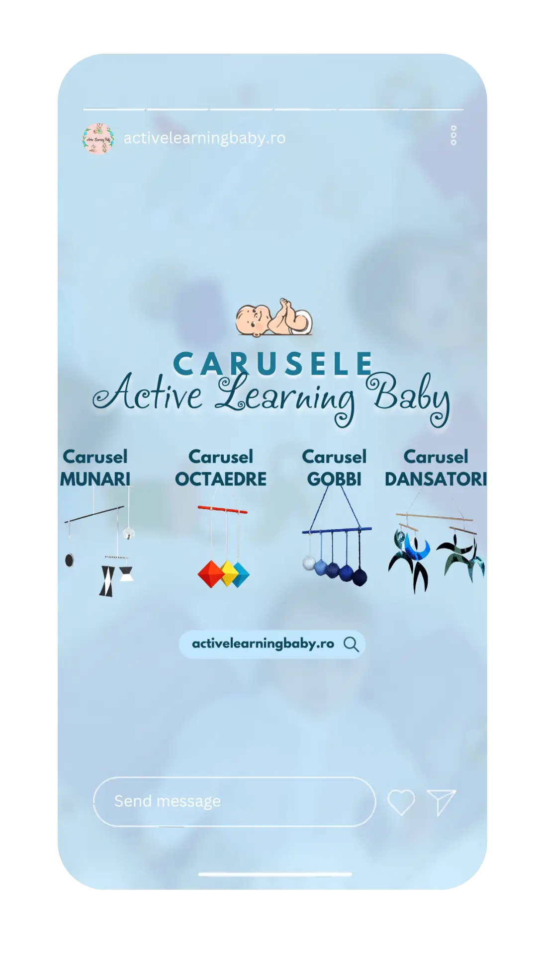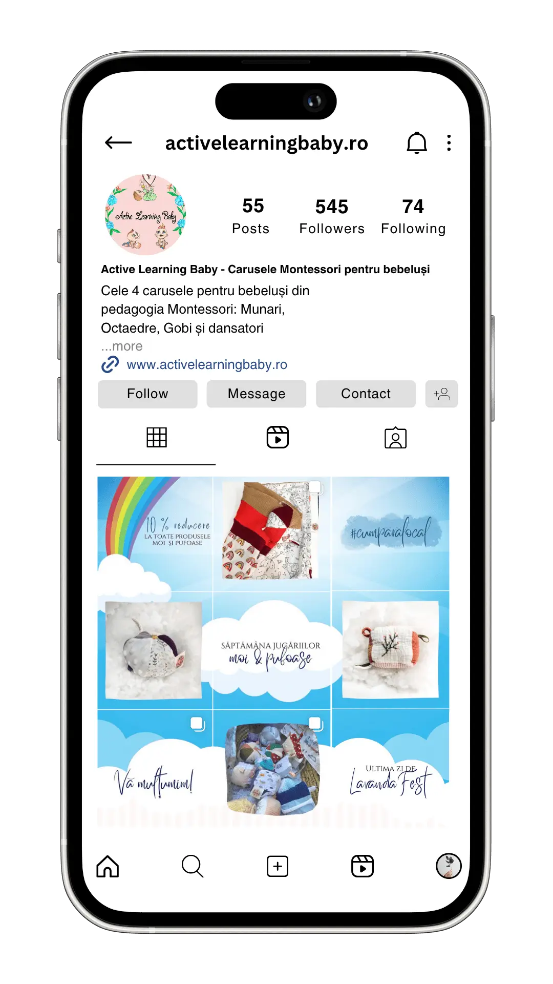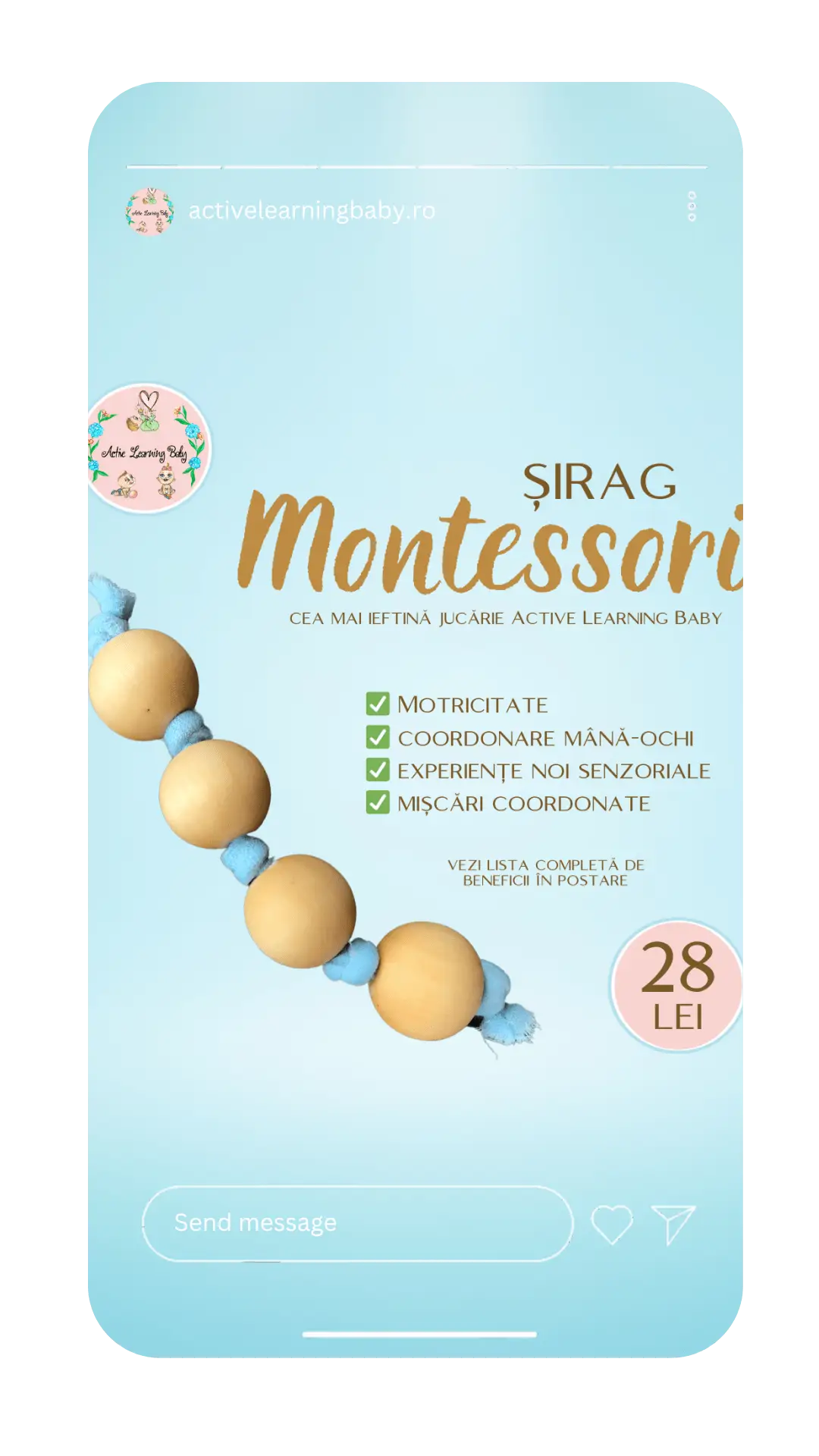 Pentru Active Learning Baby, am dezvoltat o comunicare vizuală prietenoasă și educativă, perfect adaptată universului părinților și copiilor mici. Am realizat fotografii de produs și content video cu focus educațional, punând în valoare funcționalitatea jucăriilor și conceptele de parenting activ. Vizualurile au fost integrate într-un feed personalizat, iar grafica a susținut brandingul prin materiale precum rollup-uri, flyere și carduri informative. Am crescut o comunitate activă de mămici pe Instagram, TikTok și Facebook, oferind conținut de calitate și interacțiune reală, într-un spațiu cald, empatic și bine structurat.