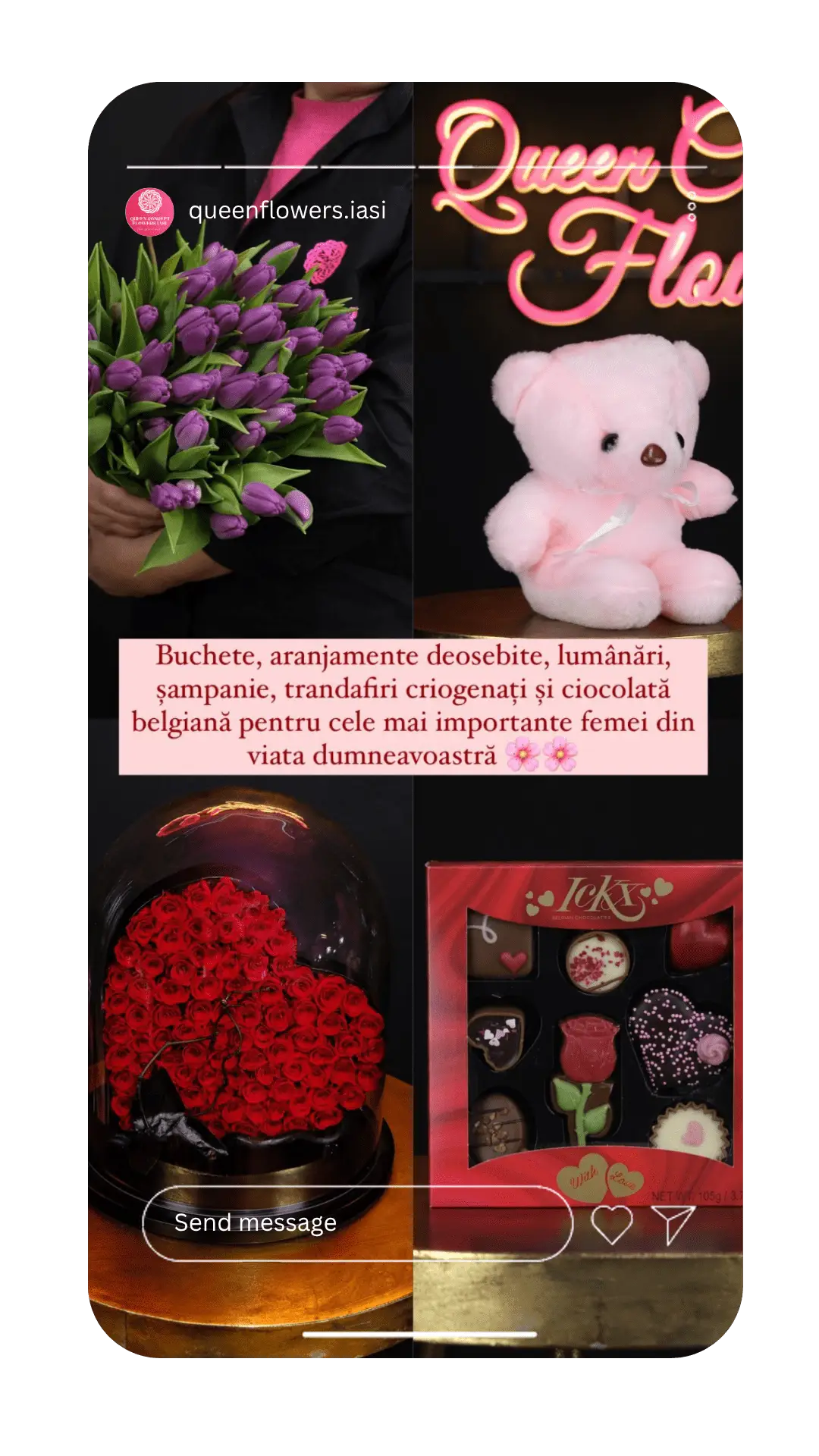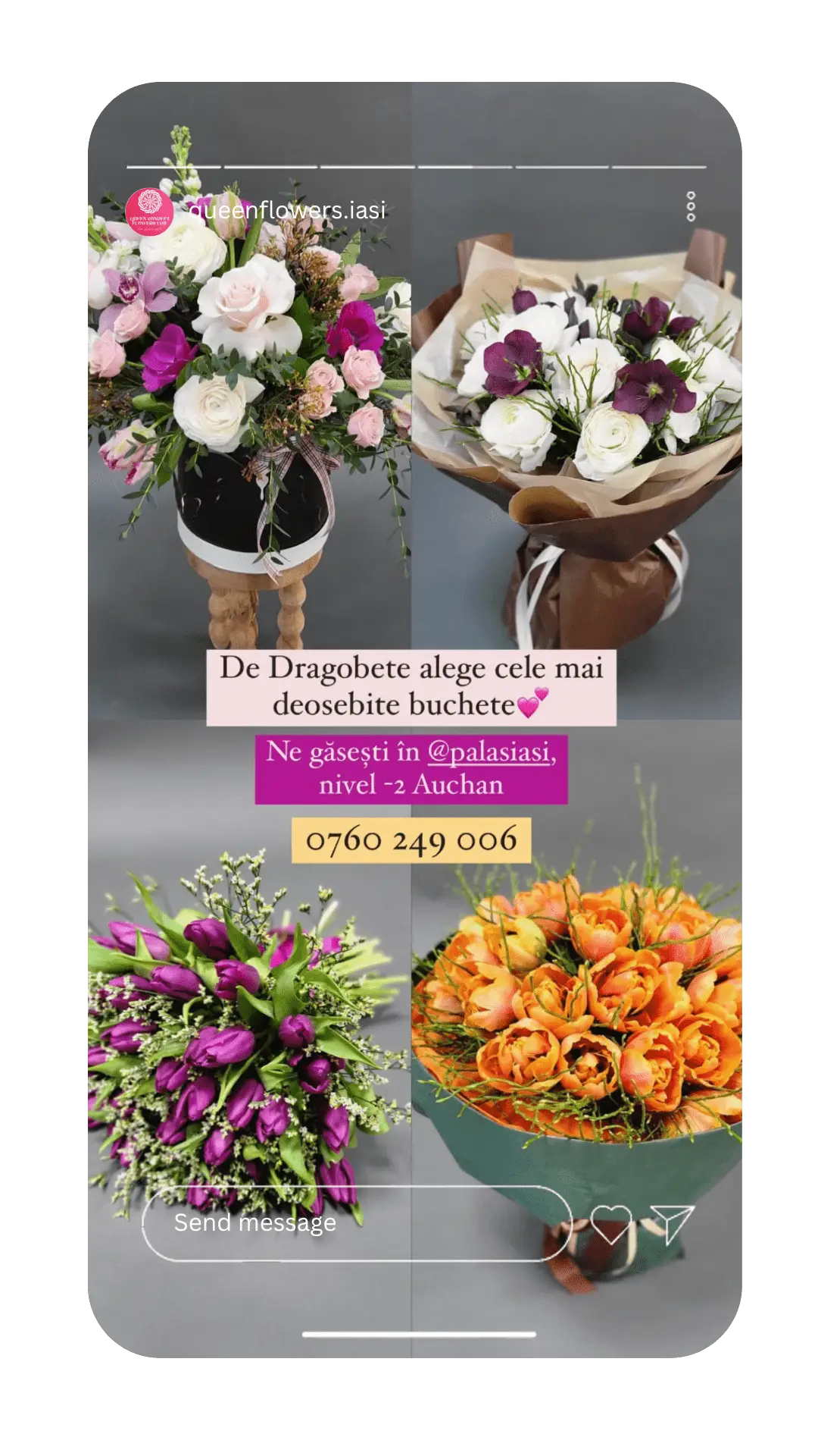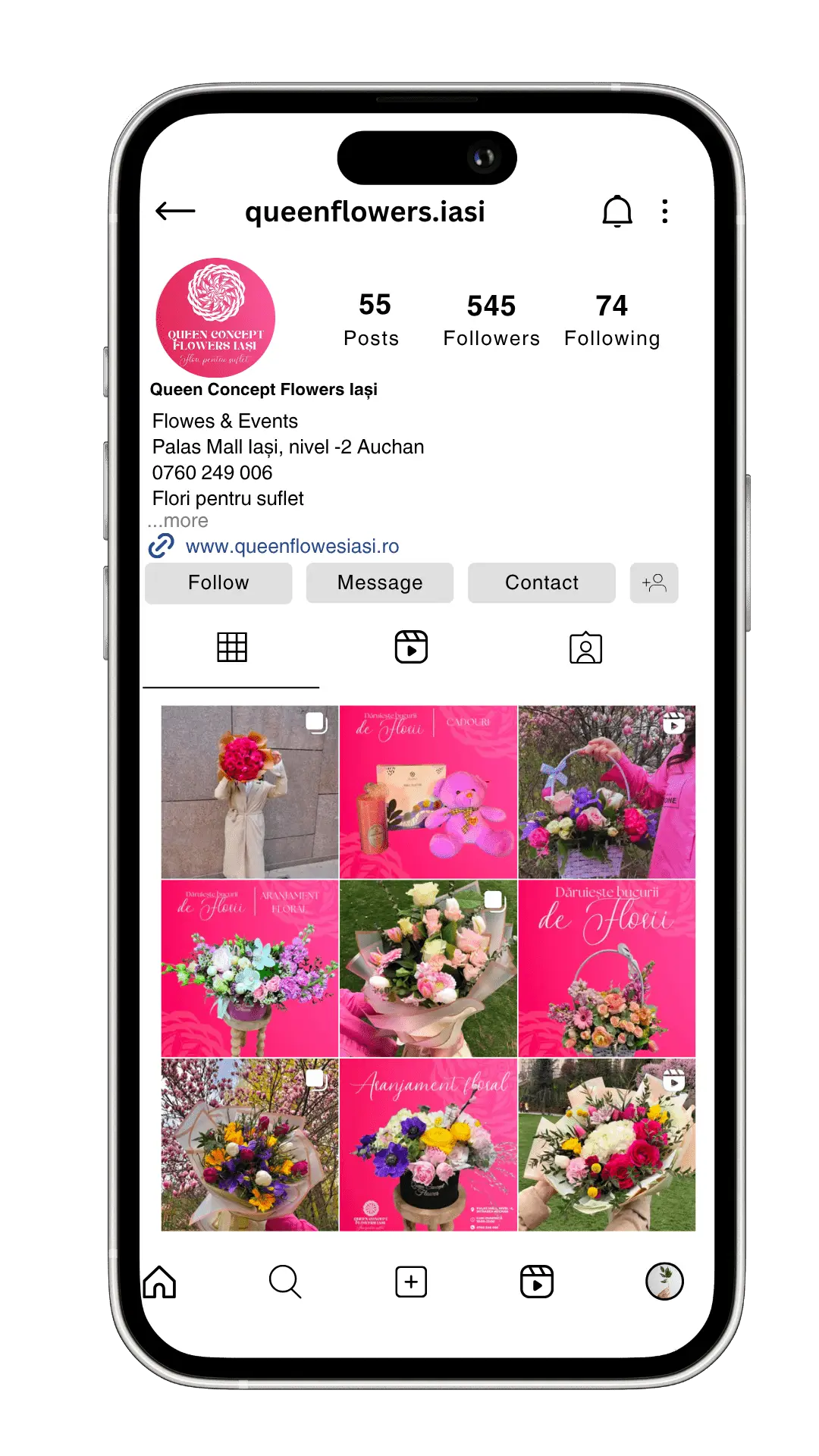 Pentru Queen Concept Flowers, am construit identitatea digitală chiar din momentul lansării în Iași. Ne-am ocupat de strategia vizuală, feed-ul inspirat din manualul de brand, fotografii pentru catalogul online, clipuri inspiraționale filmate în locație și design grafic pentru materiale promoționale. Fiind printre primele branduri cu care am colaborat, am crescut împreună, oferind o comunicare coerentă și elegantă pe toate canalele.