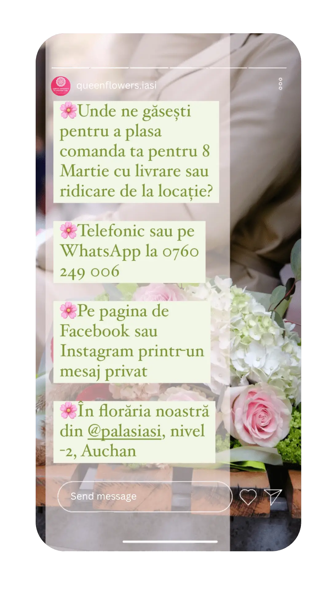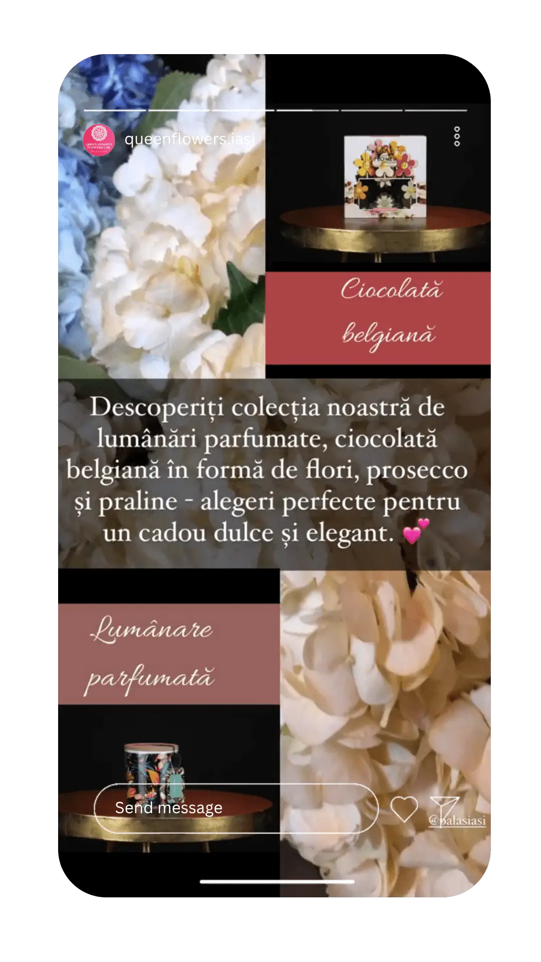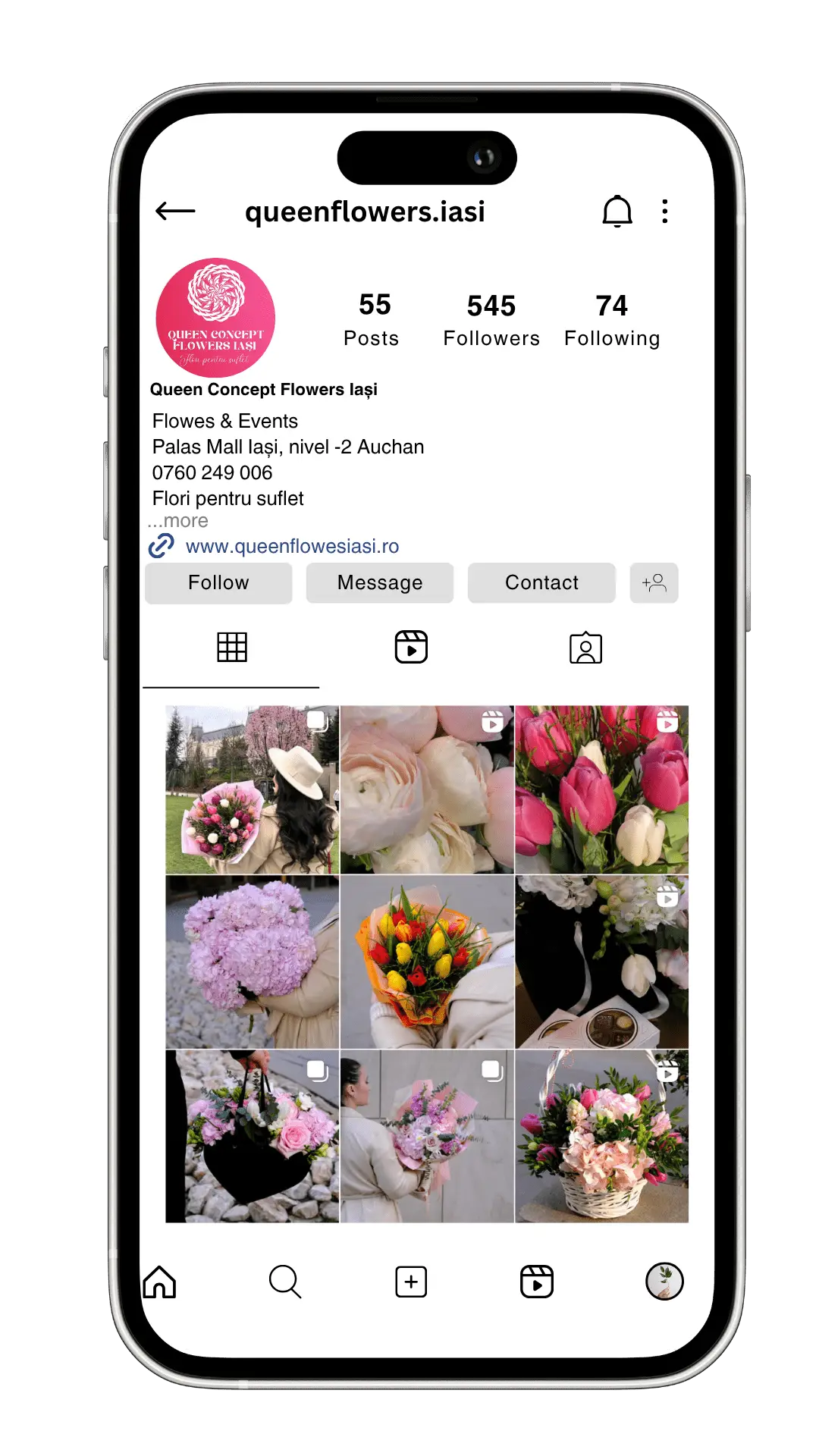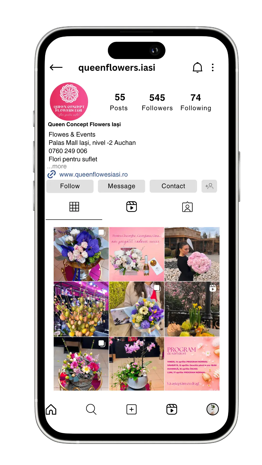Pentru Queen Concept Flowers, am construit identitatea digitală chiar din momentul lansării în Iași. Ne-am ocupat de strategia vizuală, feed-ul inspirat din manualul de brand, fotografii pentru catalogul online, clipuri inspiraționale filmate în locație și design grafic pentru materiale promoționale. Fiind printre primele branduri cu care am colaborat, am crescut împreună, oferind o comunicare coerentă și elegantă pe toate canalele.